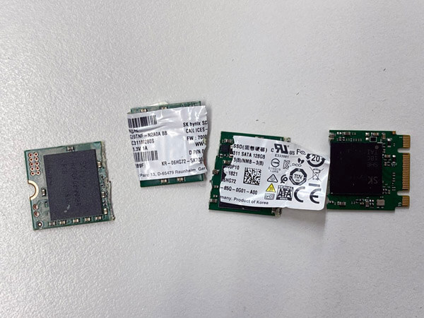 ドリルでSSDにある基盤やチップがを破損させる方法です。どの部分にデータが記憶されている基盤が配置されているかわからないので、何点か穴をあけないと確実性がありません。